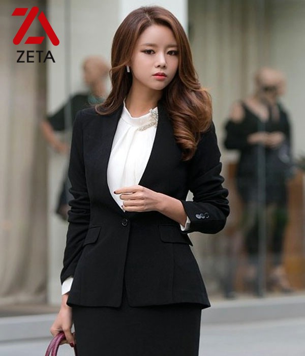 Đồng phục vest nữ công sở của thương hiệu thời trang Zeta miền bắc được thiết kế giản dị kết hợp chân váy công sở xẻ sau màu đen hoặc quần âu cùng với thắt lưng nhỏ bắt mắt đem đến cho người phụ nữ dáng vẻ thanh lịch, tinh tế.