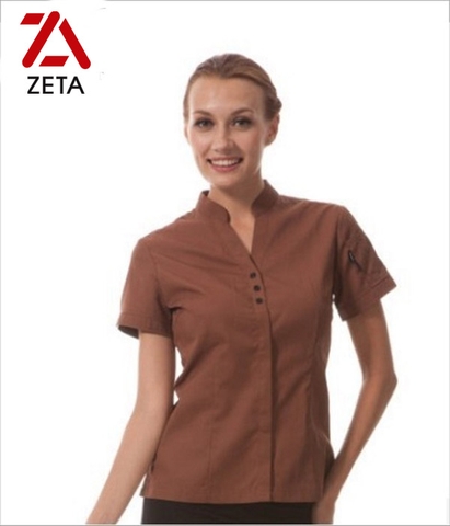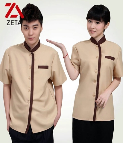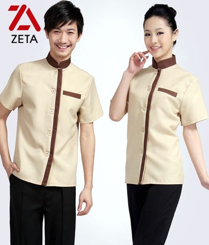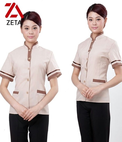 - Với kiểu dáng cộc tay phối màu nâu 2cm ở cửa tay vừa đơn giản nhưng vẫn toát lên phong thái khác biệt so với các bộ phận khách sẽ rất phù hợp cho khách sạn mặc trong mùa hè,