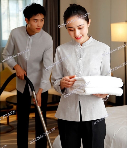 Đồng phục nhân viên tạp vụ, buồng phòng thể hiện sự thống nhất và chuyên nghiệp trong cơ cấu tổ chức của một nhà hàng, khách sạn đẳng cấp. Những sản phẩm đồng phục tạp vụ thường hướng tới sự đơn giản, nhẹ nhàng, chất liệu bền bỉ, thoáng mát, kiểu dáng tiện dụng.
