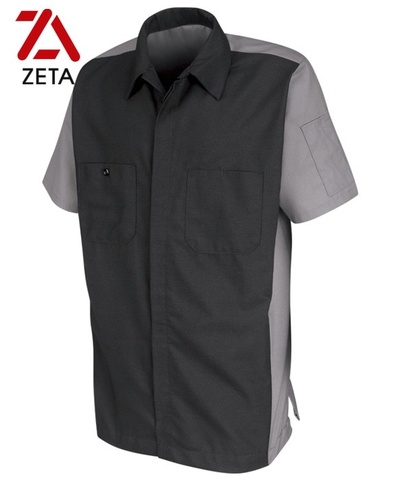 - sản phẩm quần áo bảo hộ có gam màu ghi xám hoặc màu lông chuột đang là sự lựa chọn yêu thích của các công ty cơ khí và xây dựng, Gam màu ghi kết hợp viền màu đỏ ở vai tạo ra điểm nhấn cho toàn bộ sản phẩm, giúp dễ nhận diện thương hiệu dễ dàng hơn.