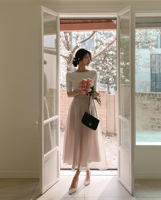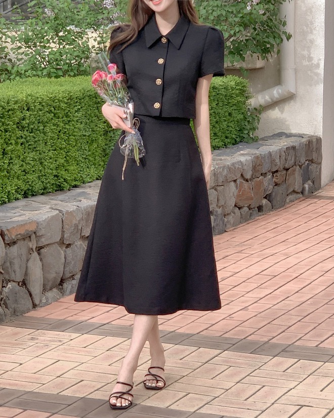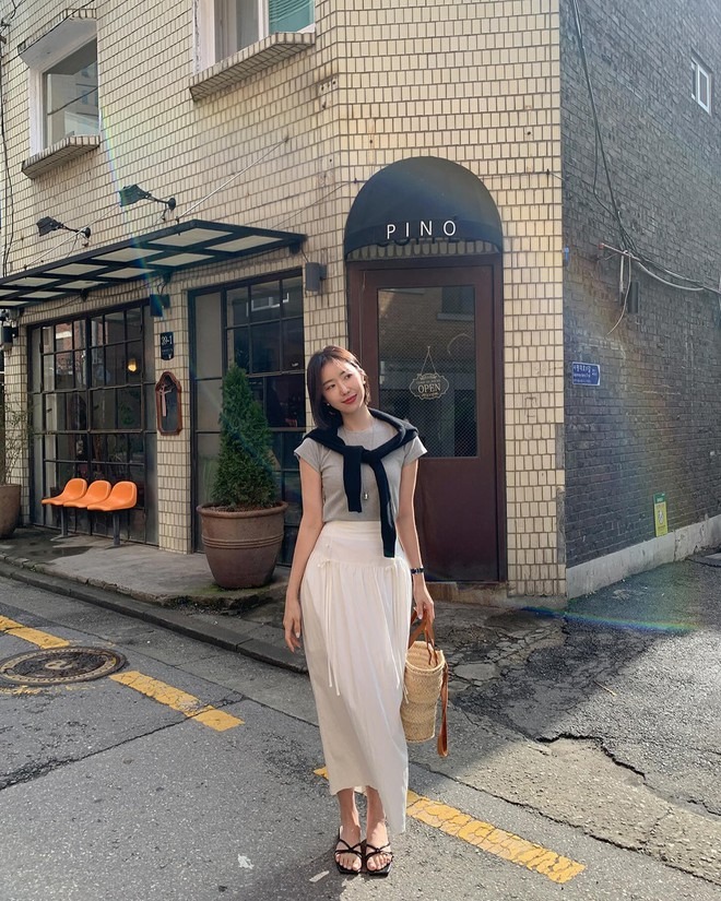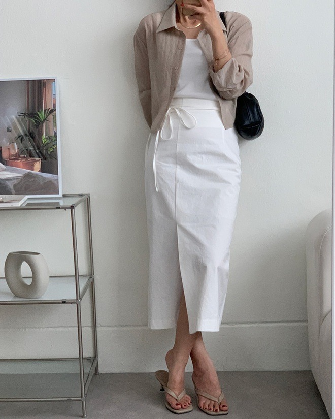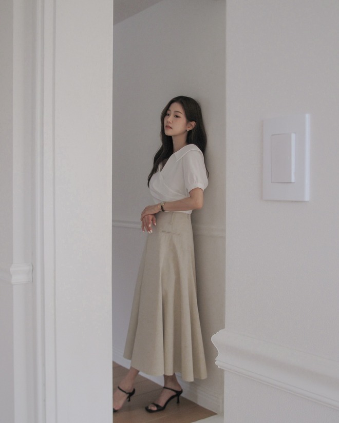 Không phải nàng nào cũng thích sơ vin, đặc biệt là trong thời tiết mùa hè, thao tác này có thể tạo cảm giác nóng bức, bất tiện. Dẫu vậy, các nàng vẫn có cách để tôn dáng cao ráo mà không cần phải sơ vin. Cụ thể, các nàng hãy kết hợp chân váy dài với áo lửng. Công thức này tạo cảm giác chân dài hơn và "hack" dáng tối ưu. Bộ đôi áo lửng và chân váy dài còn toát lên nét trẻ trung, phóng khoáng nhưng cũng không kém phần nữ tính, dịu dàng.
