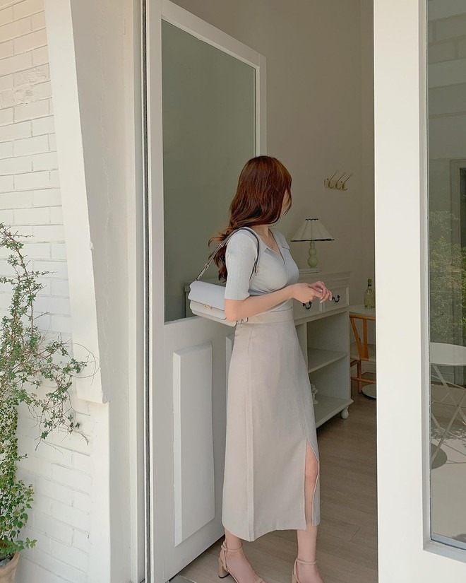 Chị em thường yêu thích kiểu chân váy chữ A nữ tính, bay bổng. Tuy nhiên, các nàng cũng đừng bỏ qua chân váy suông hoặc chân váy xẻ tà. Các mẫu chân váy này có phom dáng gọn gàng, từ đó giúp "ăn gian" chiều cao hiệu quả. Chân váy suông hoặc chân váy xẻ tà còn mang đến nét hiện đại, trẻ trung cho phong cách. Chân váy suông, chân váy xẻ tà ghi điểm ở sự thanh lịch, tinh tế nên không chỉ phù hợp để diện xuống phố mà còn lý tưởng khi mặc tới công sở.
