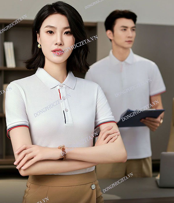 Màu trắng viền đỏ là một trong những phối màu đặc trưng của nhiều tập đoàn lớn, mang đến cảm giác trách nhiệm – chuyên nghiệp – nhiệt huyết. Áo dễ đồng bộ với các tông màu thương hiệu như đỏ, đen, vàng,…