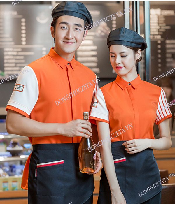 2/ Áo sơ mi đồng phục nhà hàng cộc tay da cam