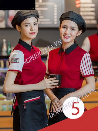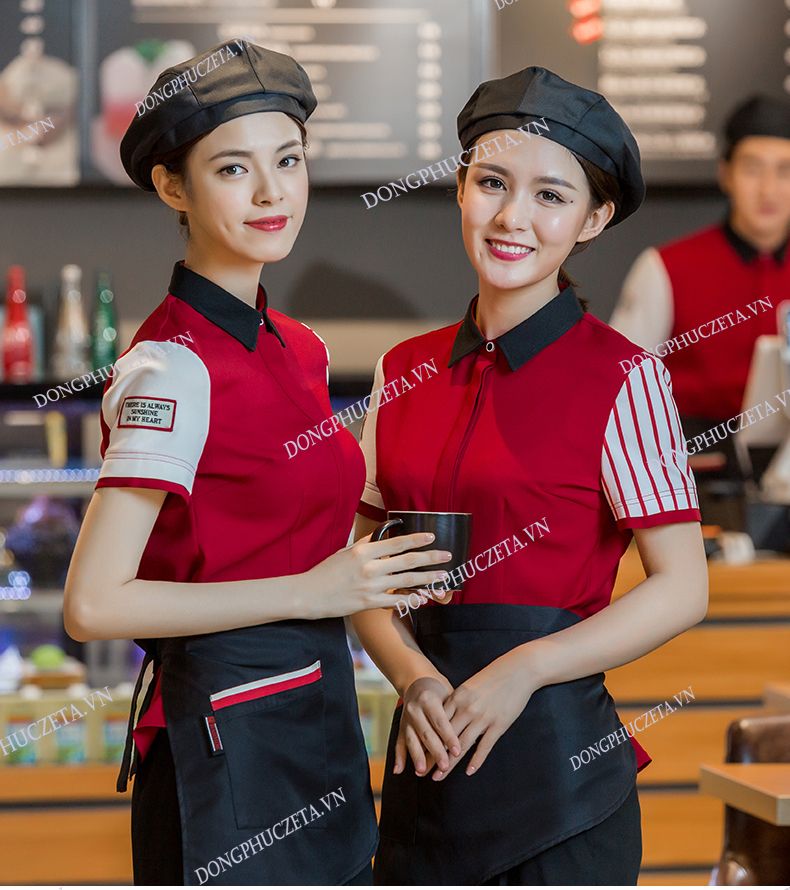 Áo đồng phục nhà hàng màu đỏ mùa hè tay ngắn quán trà sữa, cafe, nhà hàng lẩu nướng, nhà hàng phương tây