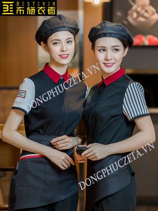 Áo đồng phục nhà hàng mùa hè tay ngắn quán trà sữa, cafe, nhà hàng lẩu nướng, nhà hàng phương tây