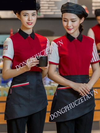 Để bắt kịp theo thị trường đồng phục cho nhân viên phục vụ được trở nên đẹp hơn và thời trang hơn. Đánh mạnh vào hình ảnh nhà hàng trong mắt người tiêu dùng. Mẫu thết kế sau đây với dáng áo sơ mi cộc tay màu đỏ với dánh body khỏe khoắn, phù hợp cho các nhà hàng mang phong cách trẻ trung như quán trà sữa, trà chanh, các quán pizza, cũng như các quán nhậu hải sản ….