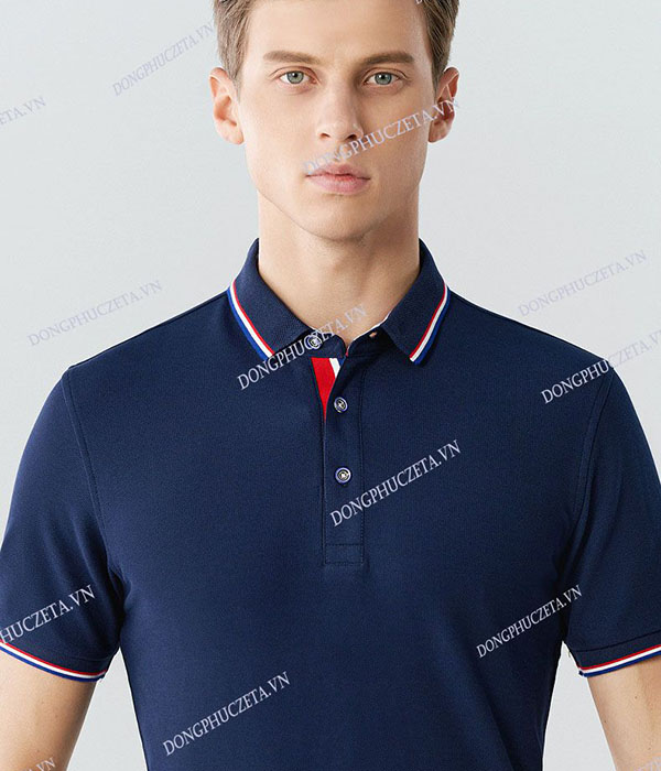 Áo phông đồng phục công ty có cổ lịch sự, kiểu dáng slimfit trẻ trung màu xanh đen