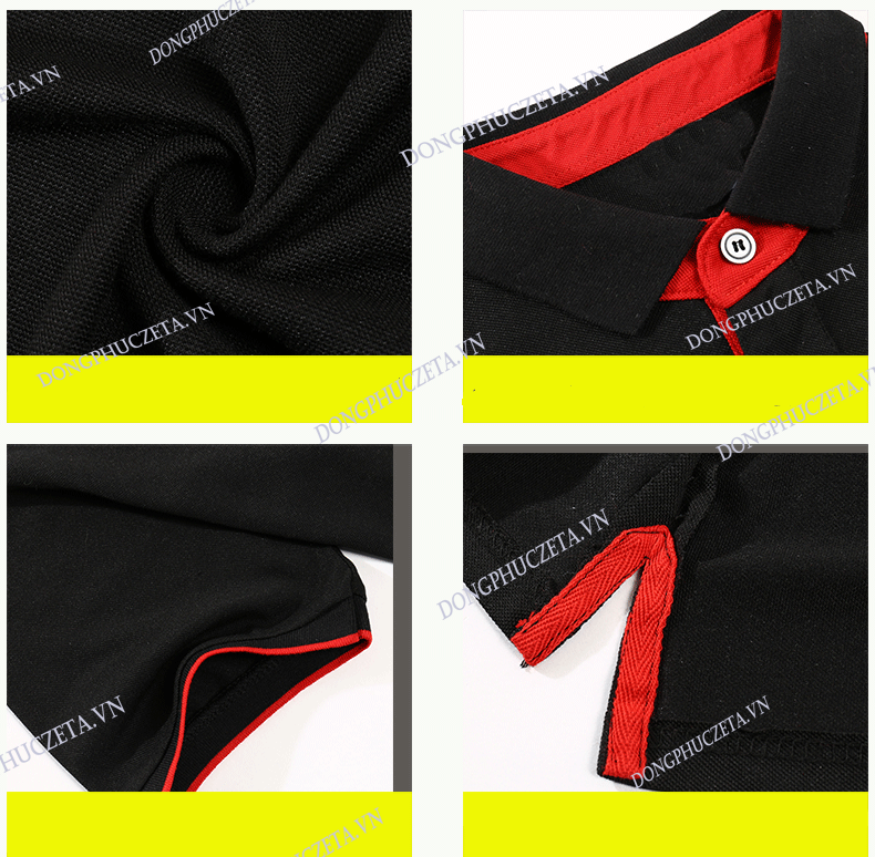 Áo đồng phục cafe màu đen viền đỏ may bằng chất liệu vải lacoste 4 chiều 100% cotton với ưu điểm dày, mềm mát, thấm hút mồ hôi, đứng form dáng mang lại vẻ đẹp sang trọng cho người mặc. Với nhiều màu sắc khác nhau cho bạn tha hồ lựa chọn màu theo tông quán cafe của mình