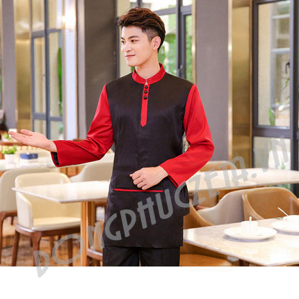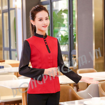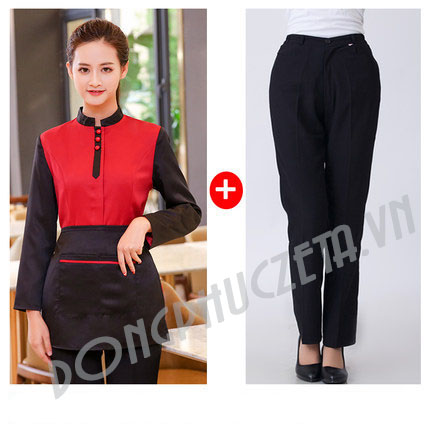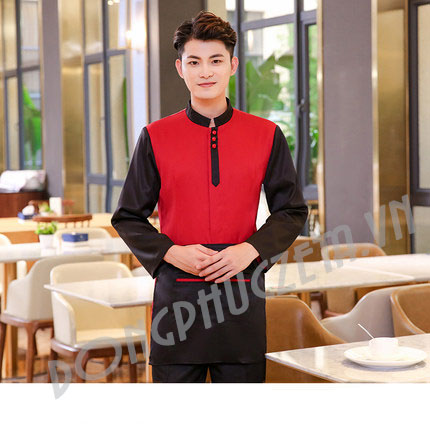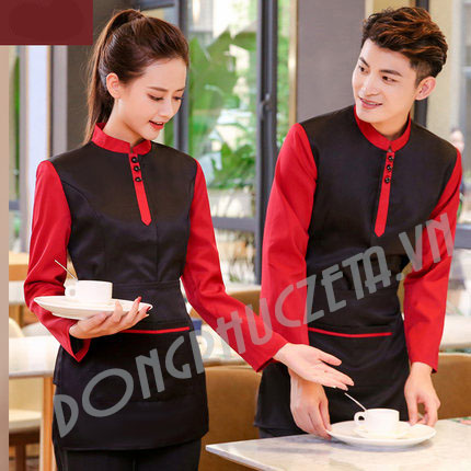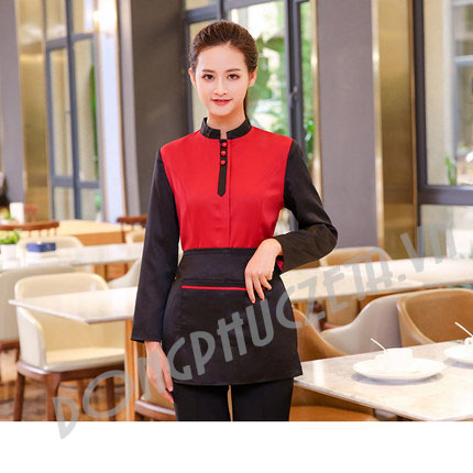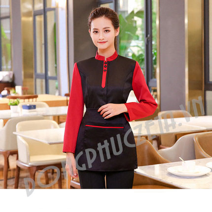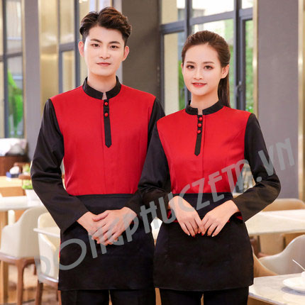 Bộ đồng phục được cách điệu khi pha phối mảng màu khác ở cổ và cả cách tay, không những thế phần nẹp áo chúng tôi còn cách điệu bằng một chiếc cavat khiến nhân viên của nhà hàng lịch sự hơn bao giờ hết