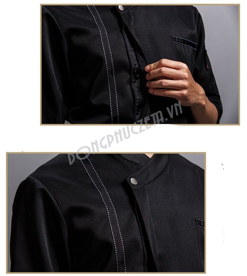 Mẫu đồng phục làm bếp màu đen tay lỡ nhà hàng nhật, hàn quốc, trung quốc, Âu, Á, khách sạn, tiệc cưới