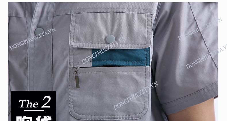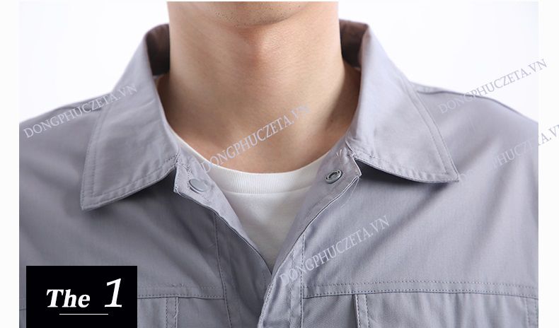 Áo với tông màu ghi chủ đạo được trần kỹ tỉ mỉ với hai đường chỉ may. Dáng áo cộc tay phù hợp cho hầu như mọi môi trường làm việc ngoài trời cũng như trong nhà máy