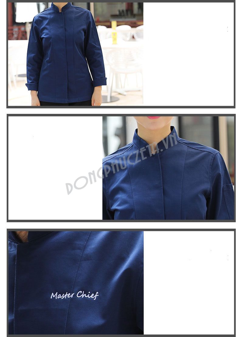 Sản phẩm Đồng phục áo bếp màu xanh dương cộc, dài tay nam nữ nhà hàng Âu, Á, nhà hàng hàn quốc, khách sạn, tiệc cưới tiệm bánh, quán cafe, fastfood quán bia