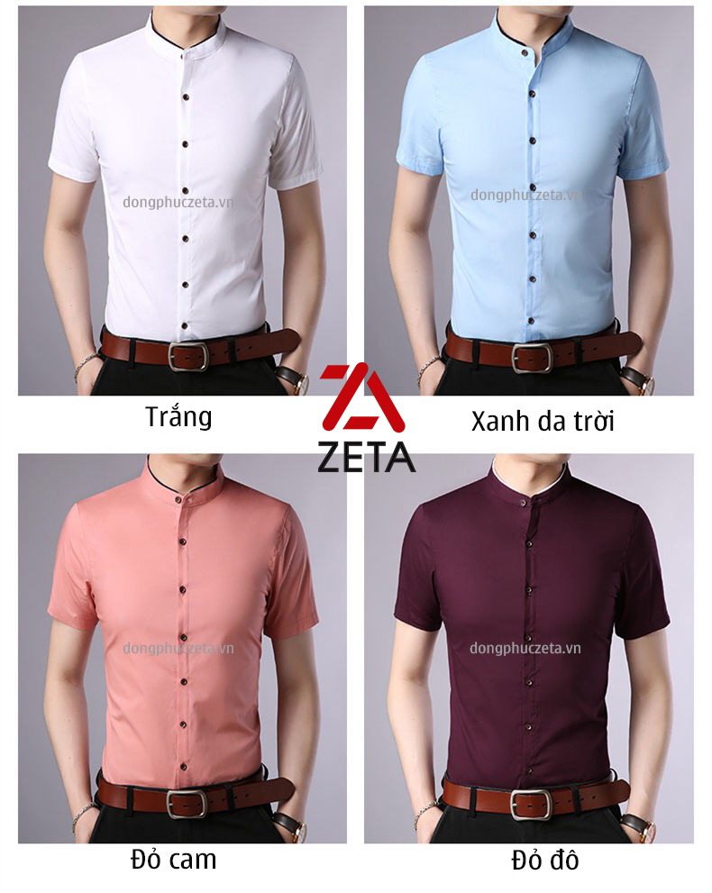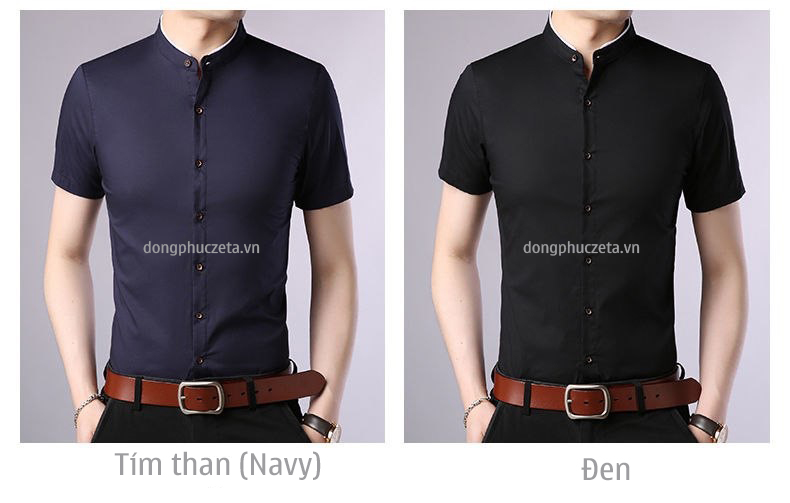 - Kiểu dáng: Áo sơ mi nam cổ tàu cơ bản