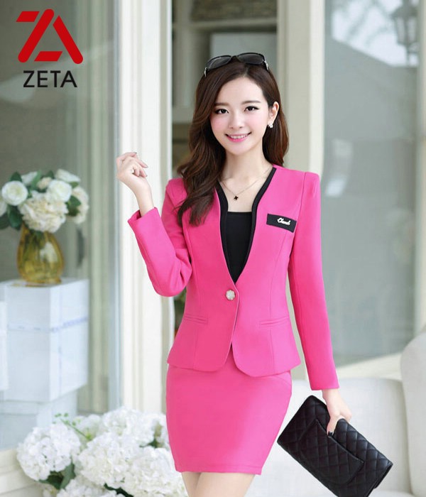 Đồng phục vest nữ công sở của thương hiệu thời trang Zeta miền bắc được thiết kế giản dị kết hợp chân váy công sở xẻ sau màu đen hoặc quần âu cùng với thắt lưng nhỏ bắt mắt đem đến cho người phụ nữ dáng vẻ thanh lịch, tinh tế.