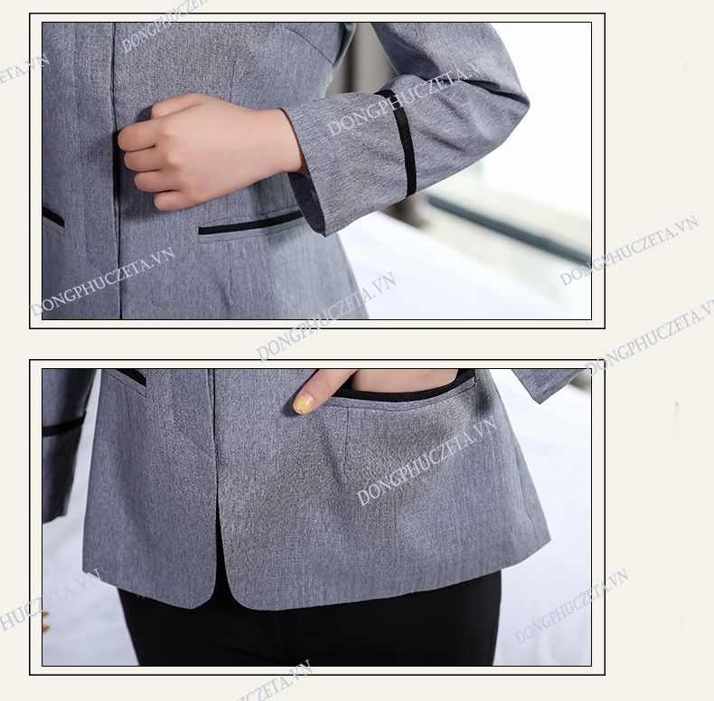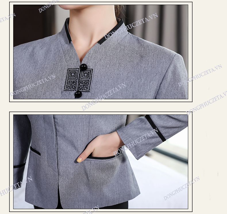 Đồng phục nhân viên buồng phòng khách sạn 5 sao, nhà nghỉ mùa thu dài tay màu ghi tối
