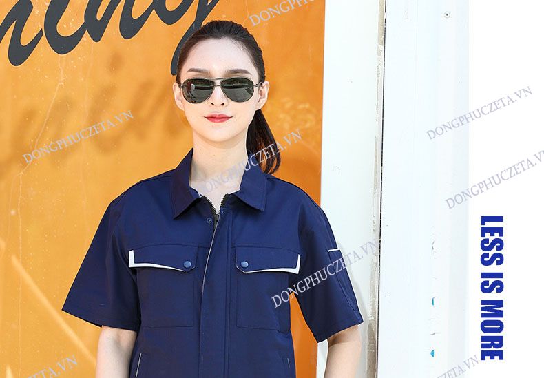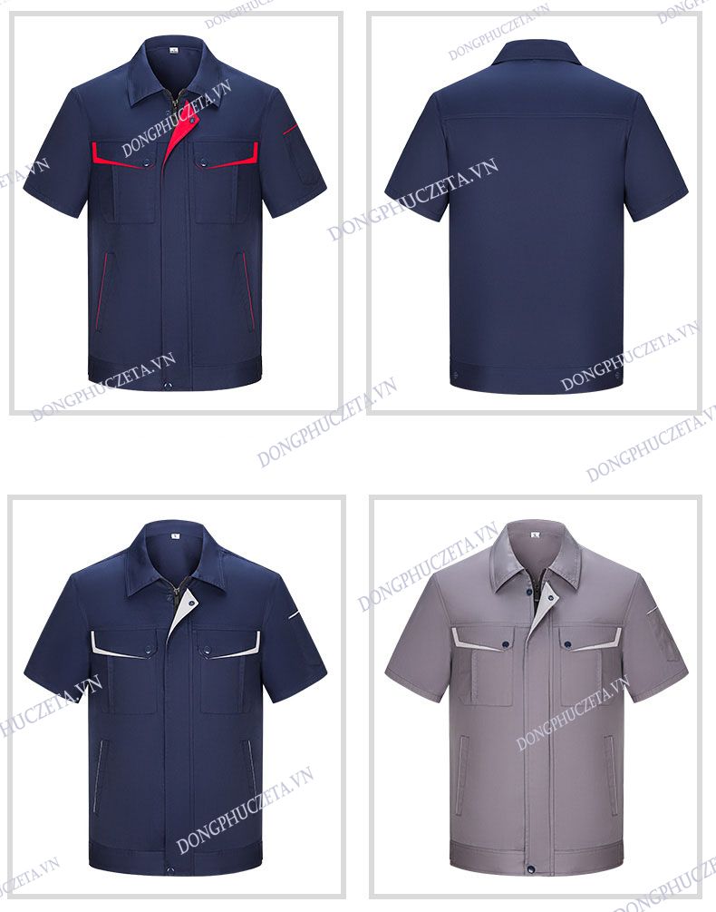 Mẫu đồng phục nhân viên kỹ thuật kỹ sư nội thất cộc tay màu xanh dương