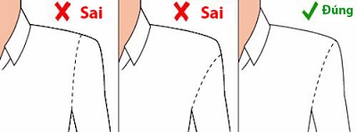 2. Vai: Áo có bờ vai vừa vặn với vai khi các đường may nối vai của áo sơ mi thẳng hàng với đầu vai của bạn. Hoặc khi không có gương soi hoặc một ai đó để hỏi ý kiến thì bạn có thể tự kiểm tra bằng cách đứng thẳng lưng với một vai dựa vào tường. Nếu bạn không nhìn thấy đường may nối vai thì chiếc áo này quá rộng. Nếu bạn nhìn thấy khoảng cách giữa đường may nối vai và tường khá rộng thì áo quá chật.