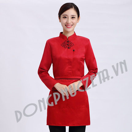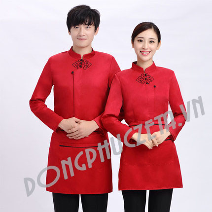 1. Mẫu đồng phục nhà hàng khách sạn đẹp màu đỏ