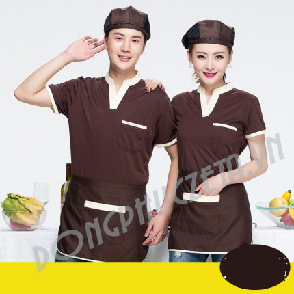 3/ Mẫu thiết kế áo phông phục vụ nhà hàng fastfood, quán bia cộc tay màu nâu phối trắng