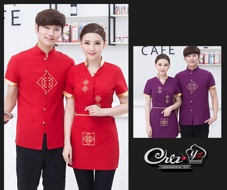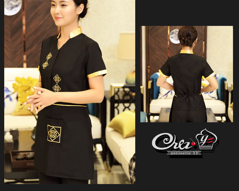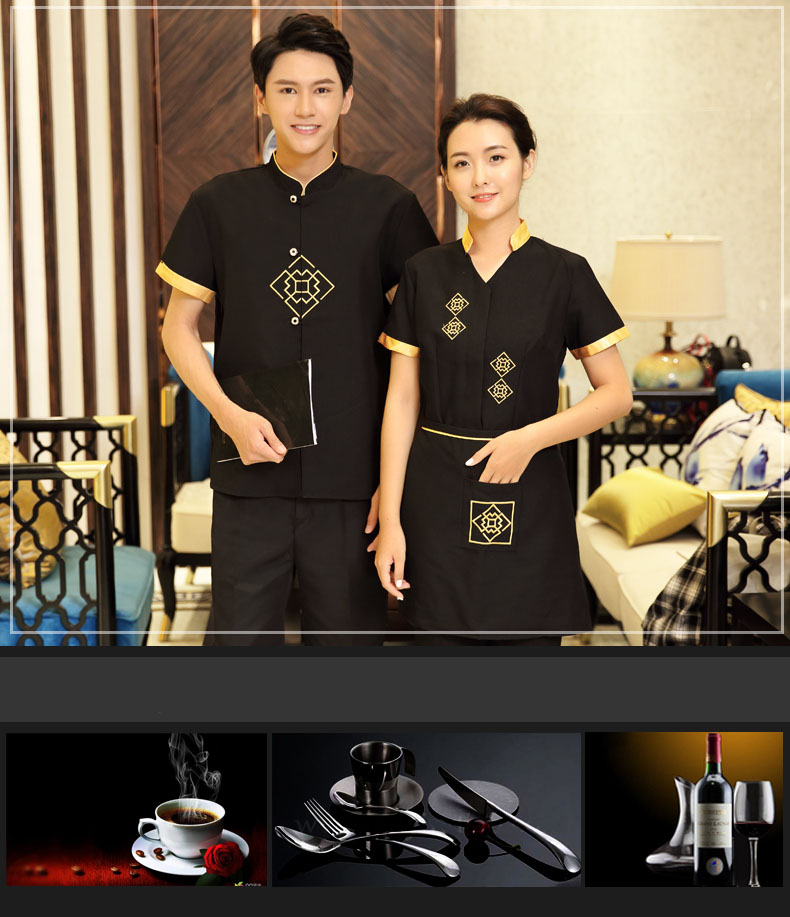 Ngoài ra với áo nữ với cổ tàu sẻ V gợi cảm kết hợp với sự pha phối màu vàng ở tay, và viền áo tạo nên nét thanh lịch, lịch sự cho nhà hàng của bạn