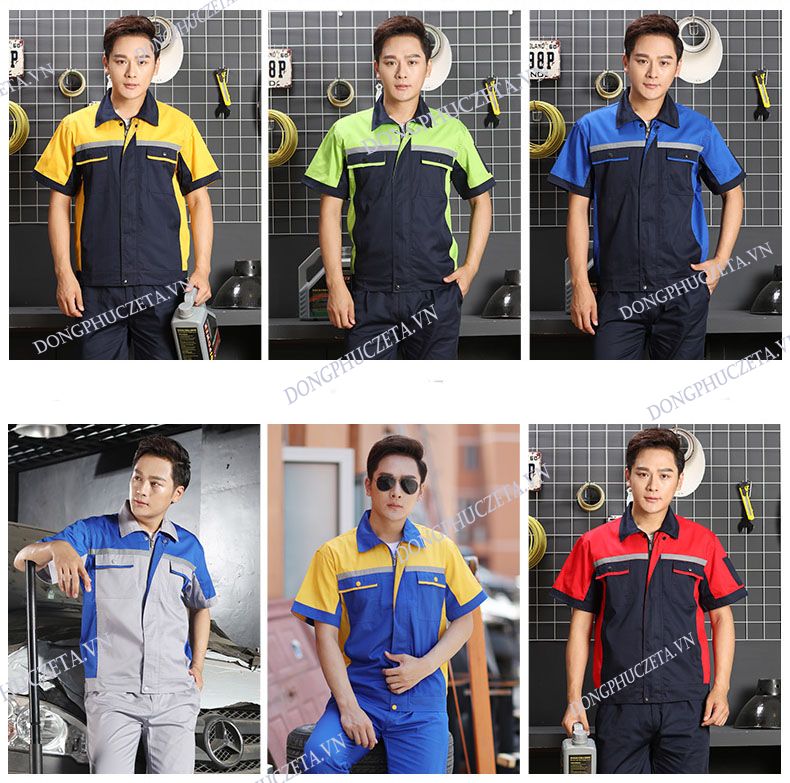 Quần áo đồng phục kỹ sư xây dựng cộc tay màu đen phối xanh dương
