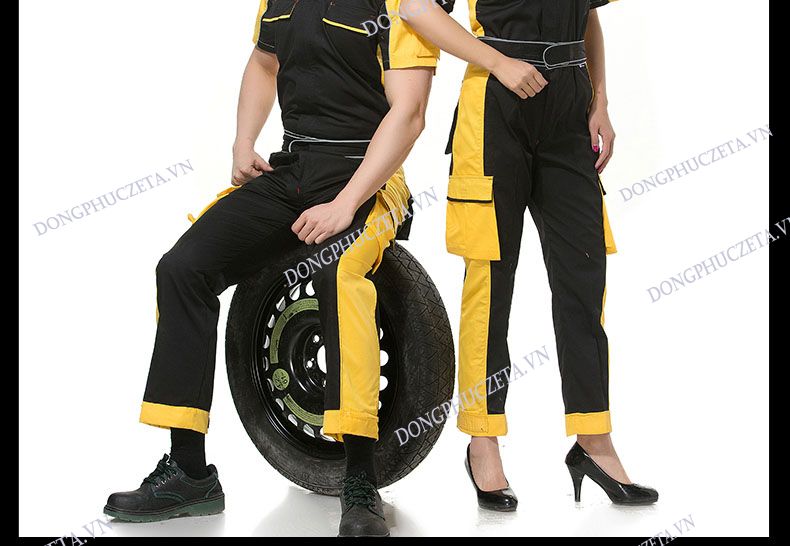Quần áo đồng phục kỹ thuật, kỹ sư cho garage ô tô xe máy màu đen phối vàng