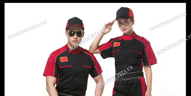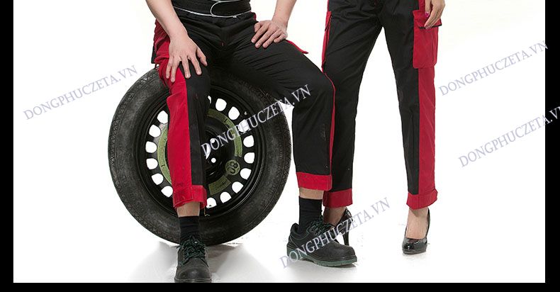 Quần áo đồng phục kỹ thuật, kỹ sư sửa chữa ô tô xe máy màu đen phối đỏ