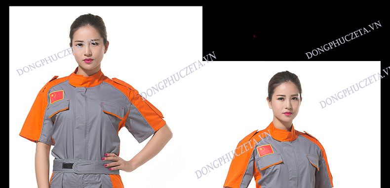 Quần áo đồng phục nhân viên kỹ thuật, kỹ sư cho garage ô tô xe máy màu ghi phối cam