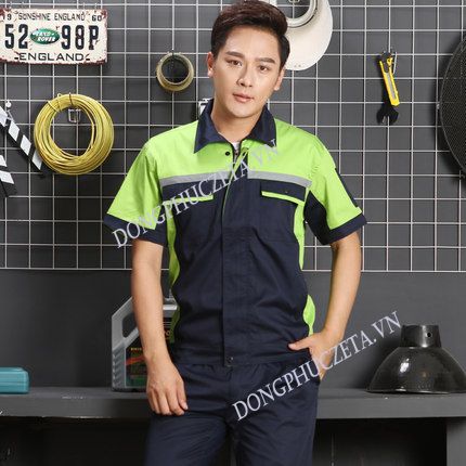 Quần áo kỹ sư xây dựng cộc tay màu đen phối xanh nõn chuối mùa hè